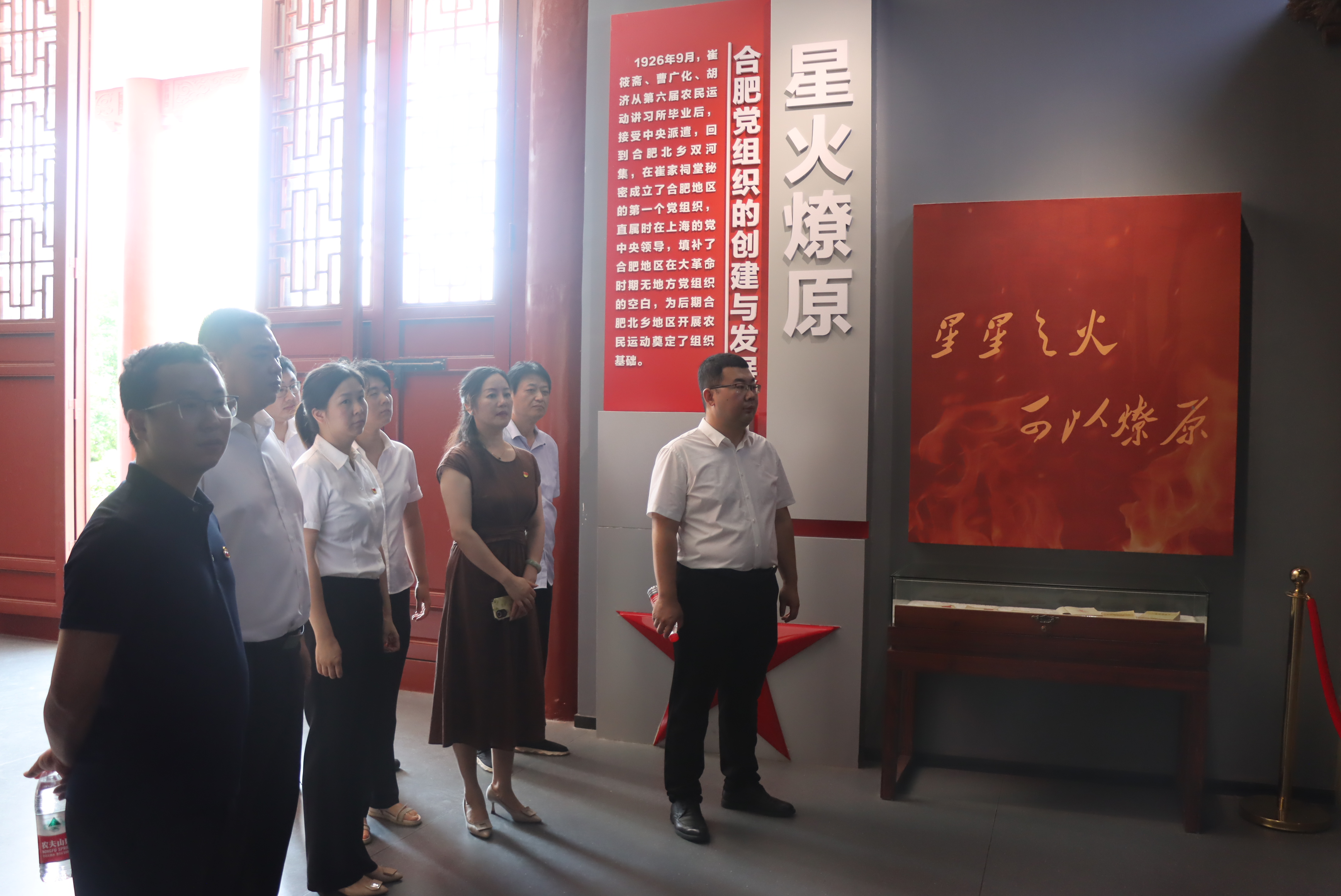 中共合肥北鄉(xiāng)支部紀念館是合肥市愛國主義教育基地、黨史教育基地、黨風廉政建設教育基地,同時也是為紀念合肥地區(qū)第一個中國共產(chǎn)黨組織(中共合肥北鄉(xiāng)支部)而建。大家跟著講解員認真了解了中共合肥北鄉(xiāng)支部創(chuàng)建歷史背景與開展革命光輝歷程,走進崔筱齋紀念館,大家在簡樸莊重的展廳里認真了解了崔筱齋烈士的生平履歷、革命歷程。展廳里珍貴的文物實物、翔實的檔案資料,吸引大家駐足良久并詳細詢問有關情況,深入了解了合肥北鄉(xiāng)黨支部艱苦卓絕的奮斗史和光輝歷程。懷著無比崇敬的心情,黨員黨旗重溫入黨誓詞。