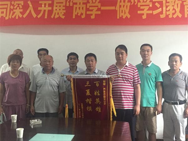 7月10日上午,界首市公司幫扶結對及秸稈禁燒工作責任區(qū)的界首市光武鎮(zhèn)李廟王行政村兩委一行8人,為界首市公司送來一面上書“百姓英雄 三夏楷模”的錦旗。