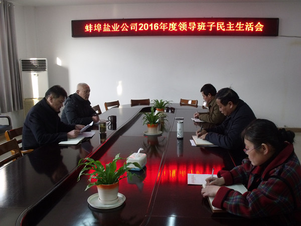 1月24日上午,按照省公司黨委統(tǒng)一部署要求,蚌埠市公司黨委召開2016年度黨員領(lǐng)導(dǎo)干部民主生活會,公司黨委書記邱軍主持會議,領(lǐng)導(dǎo)班子全體成員參加會議,公司黨委委員、紀委委員列席會議?! ?/P>