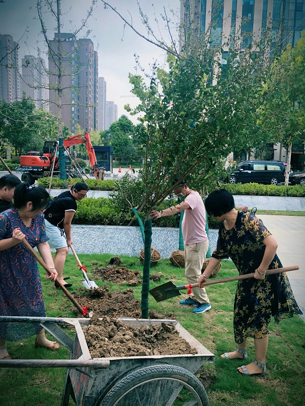 上午9時(shí)許,全體黨員準(zhǔn)時(shí)來(lái)到徽鹽世紀(jì)廣場(chǎng)商辦樓前,開(kāi)始植樹(shù)活動(dòng)?;顒?dòng)現(xiàn)場(chǎng),黨員們不顧天氣炎熱,相互協(xié)作,配合默契,展現(xiàn)出一片熱火朝天的勞動(dòng)場(chǎng)景。搬運(yùn)樹(shù)苗、揮鍬挖坑、填土栽種……經(jīng)過(guò)1個(gè)多小時(shí)的努力,六株蔥郁的紫薇屹立于商辦樓前,為徽鹽世紀(jì)廣場(chǎng)增添了一道亮麗的風(fēng)景。隨后,大家還小心翼翼地在樹(shù)上系上“機(jī)關(guān)第一黨支部種植”的銘牌,以此要求全體黨員養(yǎng)護(hù)好這些樹(shù)木,號(hào)召大家自覺(jué)養(yǎng)成植綠護(hù)綠的良好習(xí)慣。