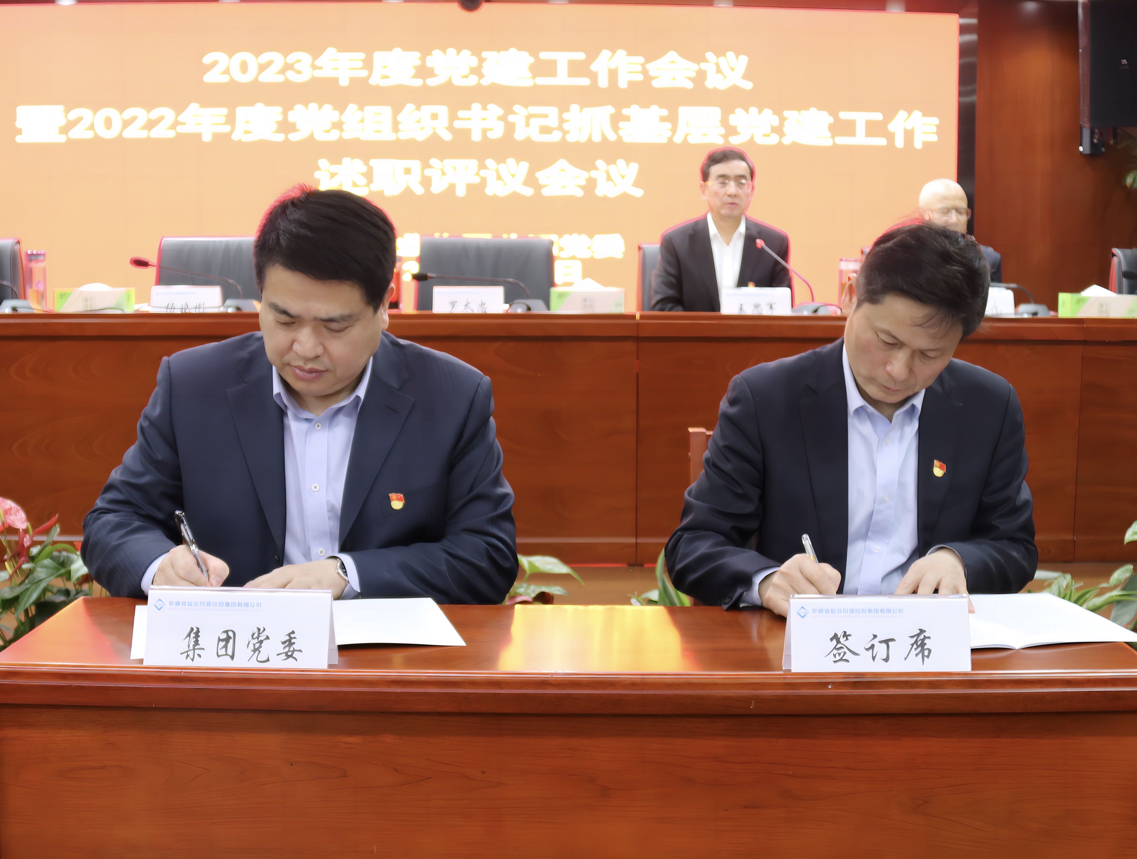 會(huì)上,集團(tuán)黨委分別與集團(tuán)班子成員簽訂黨建工作“一崗雙責(zé)”責(zé)任書,與所屬單位負(fù)責(zé)人簽訂黨建工作“第一責(zé)任人”責(zé)任書,并開展了2022年度黨組織書記抓基層黨建工作述職評(píng)議。羅太忠對(duì)三家現(xiàn)場(chǎng)述職的黨組織書記工作開展情況進(jìn)行一一點(diǎn)評(píng),并對(duì)下一階段提出工作提出具體要求,與會(huì)人員現(xiàn)場(chǎng)進(jìn)行評(píng)議打分。會(huì)議還重點(diǎn)對(duì)2023年度集團(tuán)公司黨的建設(shè)工作進(jìn)行了安排部署。
