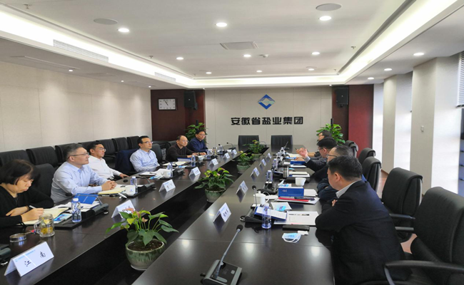 王思軍對趙玉祥一行的到來表示歡迎,重點介紹了省鹽業(yè)集團近年來的經(jīng)營情況、業(yè)務板塊布局、轉(zhuǎn)型發(fā)展及未來戰(zhàn)略規(guī)劃。王思軍指出,省鹽業(yè)集團近年來順應鹽業(yè)體制改革,堅定轉(zhuǎn)型發(fā)展不動搖,在做好傳統(tǒng)主業(yè)的基礎(chǔ)上,積極布局生態(tài)環(huán)保、城市更新、健康養(yǎng)老產(chǎn)業(yè),為安徽鹽業(yè)可持續(xù)、高質(zhì)量發(fā)展夯實基礎(chǔ)。