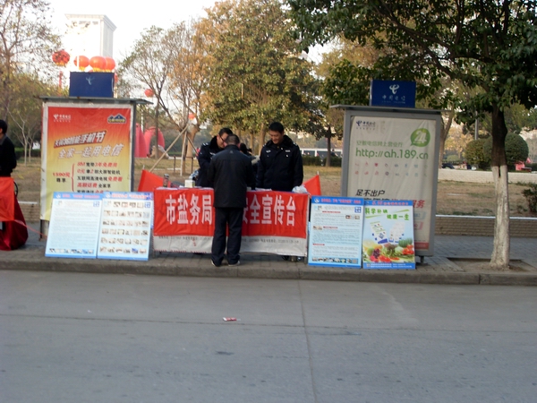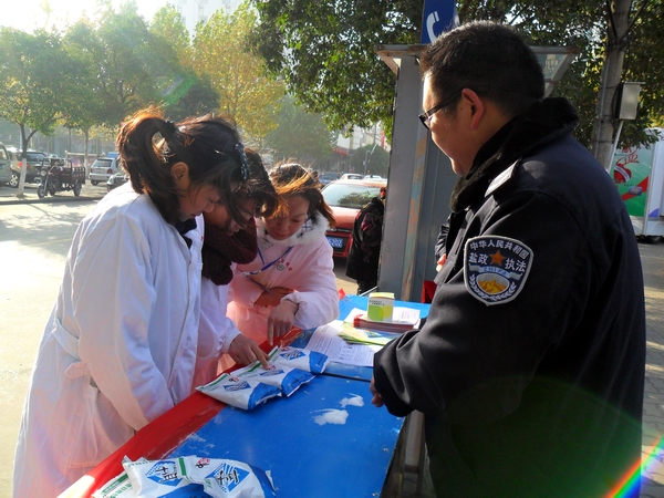 在本次活動(dòng)中,阜陽市局設(shè)立宣傳咨詢臺,宣傳展架4個(gè),擺放精心準(zhǔn)備的宣傳資料和傳單,展示近期在市場查獲得各類假冒鹽品,現(xiàn)場接受市民咨詢散發(fā)宣傳單300余份,向群眾宣傳普及鹽業(yè)法規(guī),并推出了現(xiàn)場教市民辨別真假碘鹽的活動(dòng),咨詢臺前觀看宣傳圖版和前來咨詢的群眾絡(luò)繹不絕,廣大市民對國家為確保民生,食鹽專營的政策深表理解和支持。市領(lǐng)導(dǎo)對宣傳點(diǎn)進(jìn)行慰問檢查時(shí),對阜陽市的鹽政管理給予了充分肯定和認(rèn)可,并鼓勵(lì)大家再接再厲再創(chuàng)佳績。