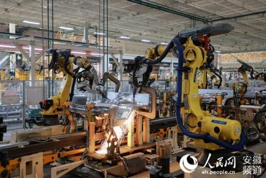 江汽集團生產線。圖為機器人正在進行焊接。人民網 王曉飛攝