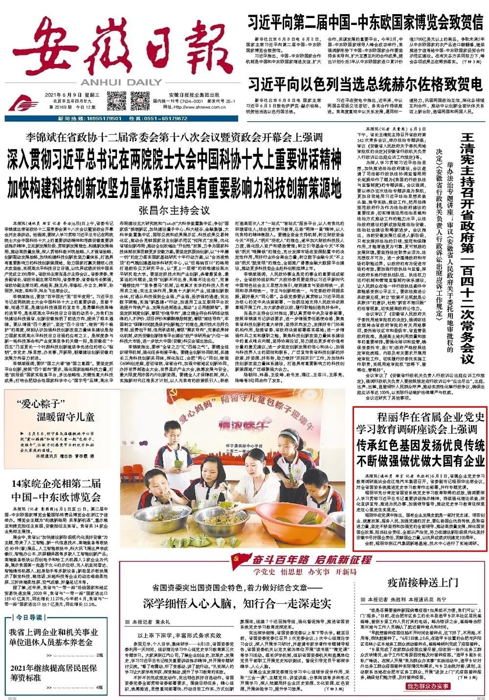 省屬企業(yè)黨史學(xué)習(xí)教育調(diào)研座談會6月8日召開,省委副書記程麗華出席會議。安徽新聞聯(lián)播和安徽日報頭版對此進(jìn)行報道,一起來看: