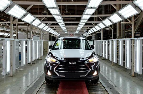 1990年至今,江汽集團(tuán)累計(jì)出口各類車型超70萬(wàn)輛。圖為江淮乘用車總裝生產(chǎn)線。江汽集團(tuán)供圖