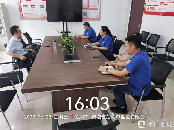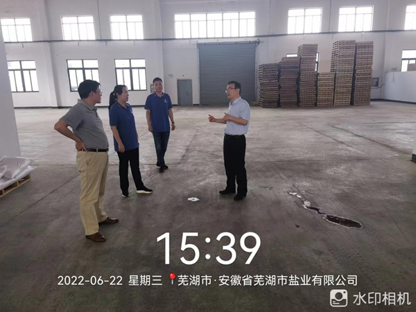 2022年6月22日,集團(tuán)公司黨委委員、副總經(jīng)理,鹽業(yè)發(fā)展公司黨委書記、董事長王奇赴蕪湖市鹽業(yè)公司檢查安全生產(chǎn)工作。