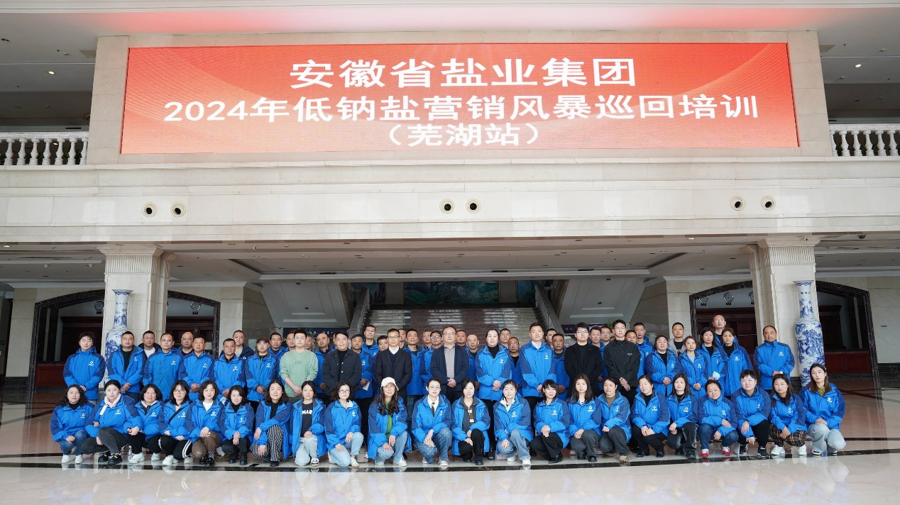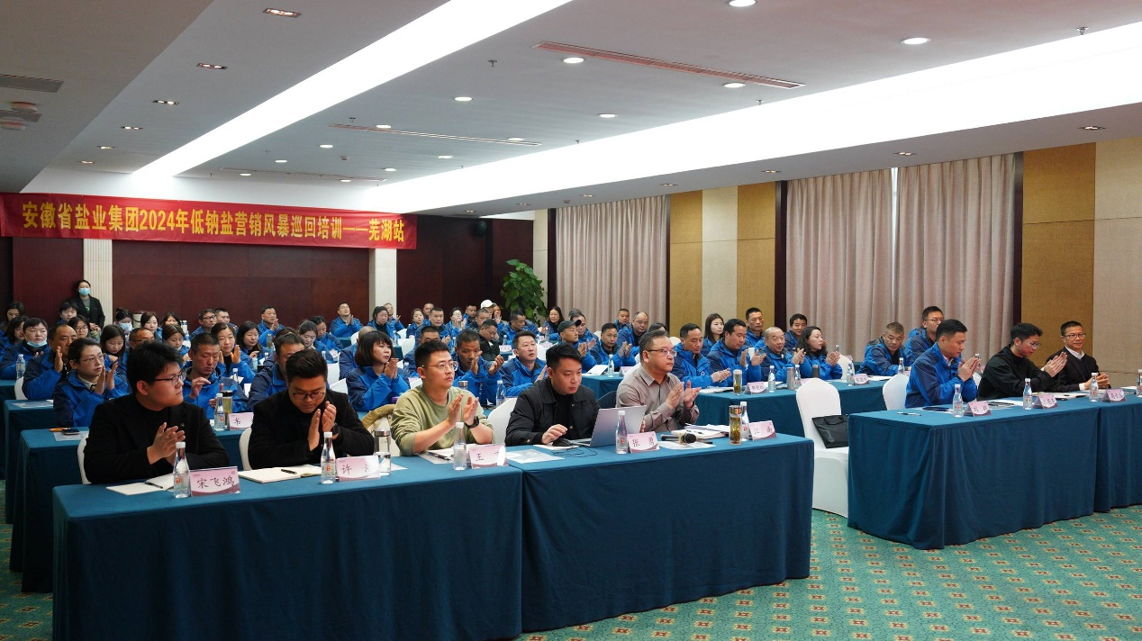 為進(jìn)一步提升全體員工的營銷技能,提高低鈉鹽在市場供給中的比例和普及率, 3月28日上午,由安徽鹽業(yè)集團(tuán)牽頭組織的2024年低鈉鹽營銷風(fēng)暴巡回培訓(xùn)——蕪湖站順利召開,蕪湖市縣公司共70余名職工參加培訓(xùn)。