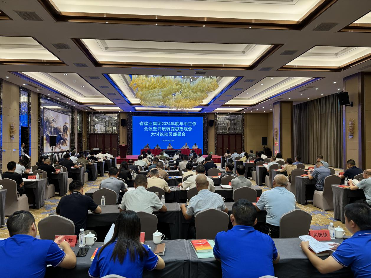8月14日下午,省鹽業(yè)集團(tuán)召開(kāi)2024年度年中工作會(huì)議暨開(kāi)展轉(zhuǎn)變思想大討論動(dòng)員部署會(huì),省鹽業(yè)集團(tuán)黨委書(shū)記、董事長(zhǎng)宇豐出席會(huì)議并講話,省鹽業(yè)集團(tuán)黨委委員、副總經(jīng)理(主持日常經(jīng)營(yíng)工作),合肥市鹽業(yè)公司黨委書(shū)記、董事長(zhǎng)、經(jīng)理張鷹主持會(huì)議。會(huì)議傳達(dá)了省生態(tài)環(huán)境集團(tuán)2024年度年中工作會(huì)議精神及羅太忠書(shū)記對(duì)鹽板塊的有關(guān)要求,通報(bào)了省鹽業(yè)集團(tuán)2024年上半年黨建、經(jīng)營(yíng)、黨風(fēng)廉政建設(shè)等工作情況,解讀了《全省鹽業(yè)系統(tǒng)轉(zhuǎn)變思想觀念大討論工作方案》,對(duì)下一階段重點(diǎn)工作進(jìn)行了安排部署,部分單位圍繞新業(yè)務(wù)開(kāi)展進(jìn)行了交流發(fā)言。