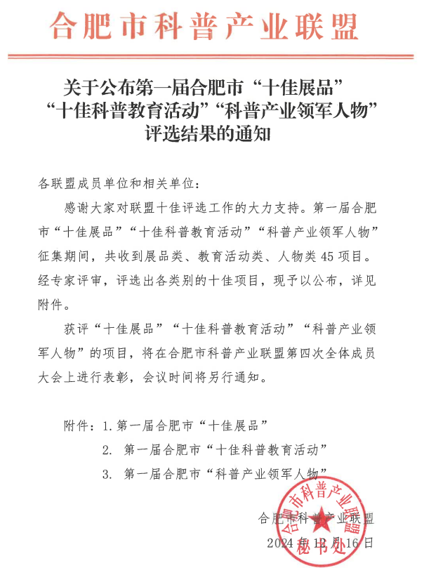 “鹽”學(xué)之旅科普志愿服務(wù)活動(dòng),還榮獲過“2024年度長三角優(yōu)秀科技志愿服務(wù)品牌活動(dòng)”“2024年合肥市志愿服務(wù)大賽銀獎(jiǎng)”等殊榮,并獲得中共合肥市委社會(huì)工作部5000元的項(xiàng)目資金支持。